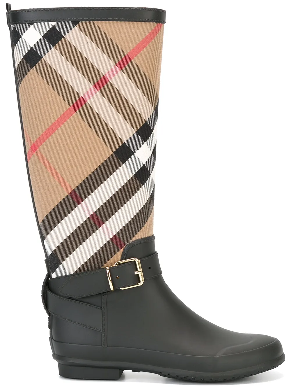 Burberry Belt Detail Check and Rubber Rain boots - Black