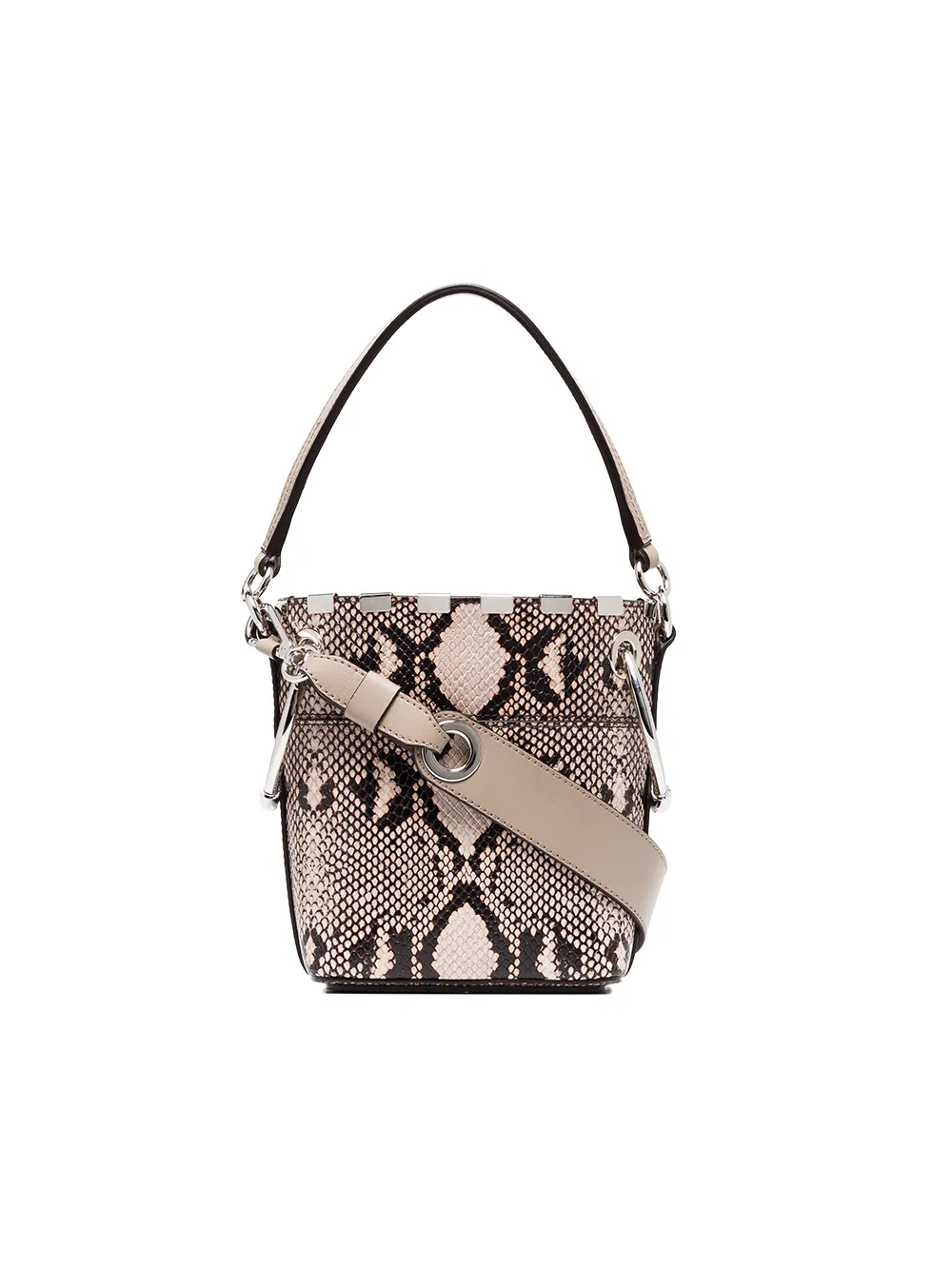 Chloé nude and brown roy mini snake print leather bucket bag - Grey