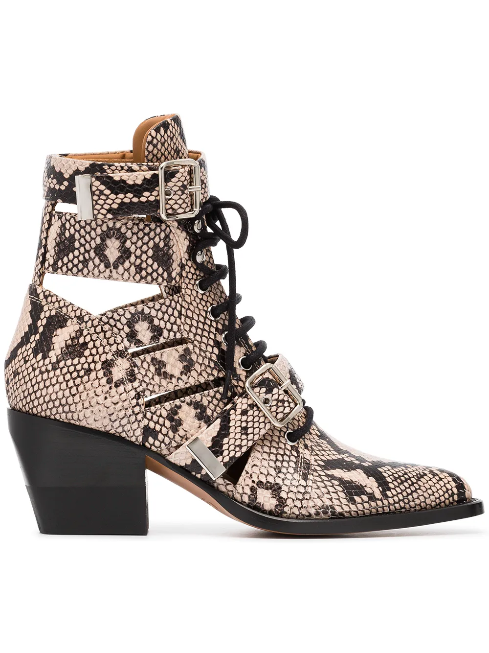 Chloé brown and black rylee 80 snakeskin effect leather boots