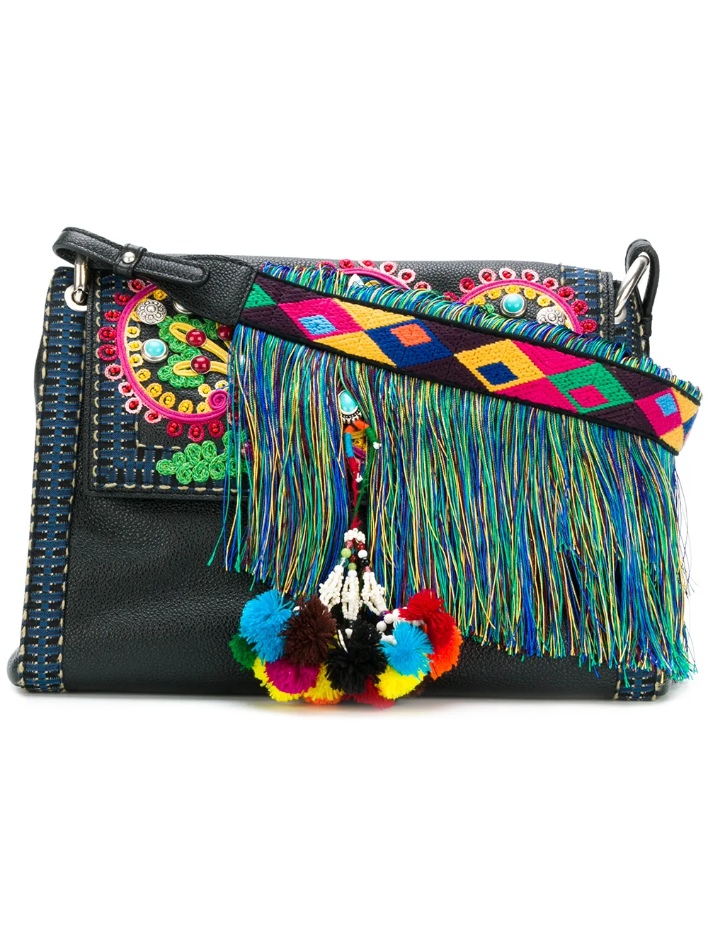 Etro embroidered shoulder bag - Black