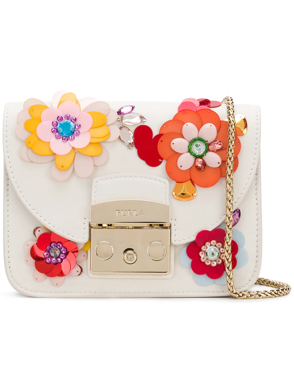 Furla floral appliqué Metropolis crossbody - White