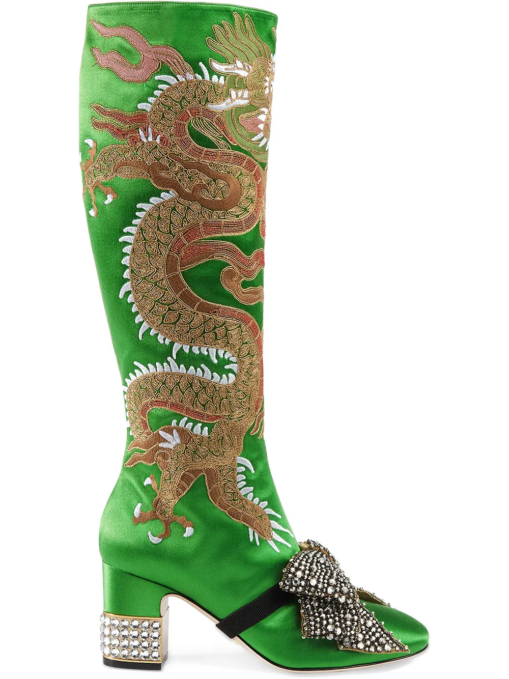 Gucci Green Dragon 75 Satin knee boots