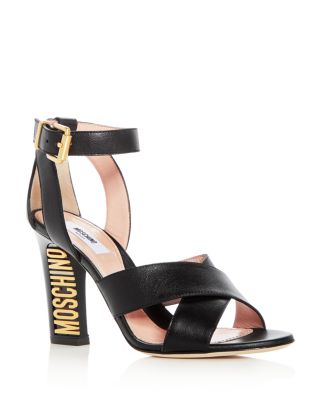 Moschino Women's Leather Logo Crisscross High-Heel Sandals