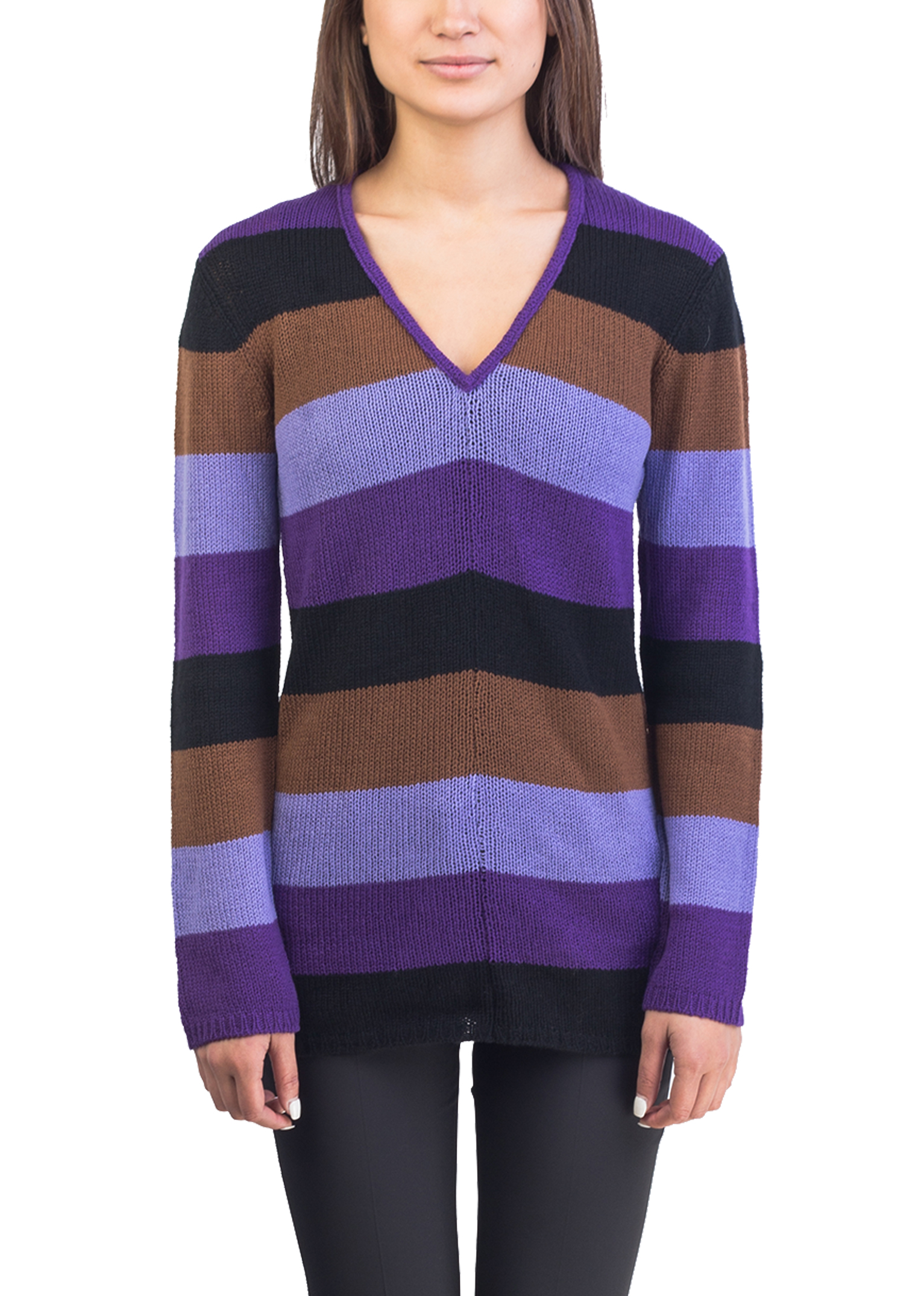 Prada Women's Cashmere Striped V-Neck Sweater Purple
