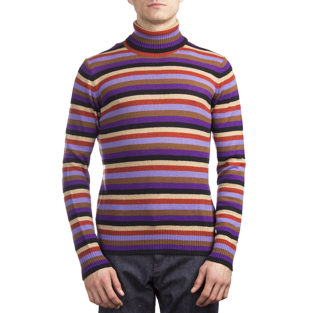 Prada Men's Cashmere Turtleneck Striped Sweater Multicolor