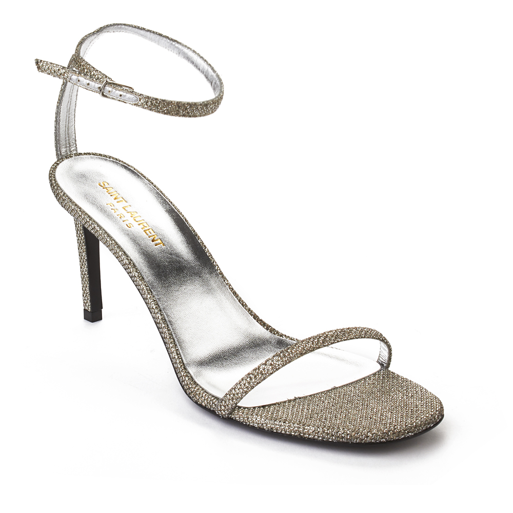 Saint Laurent Women's Ankle Strap High Heels Shoes Silver