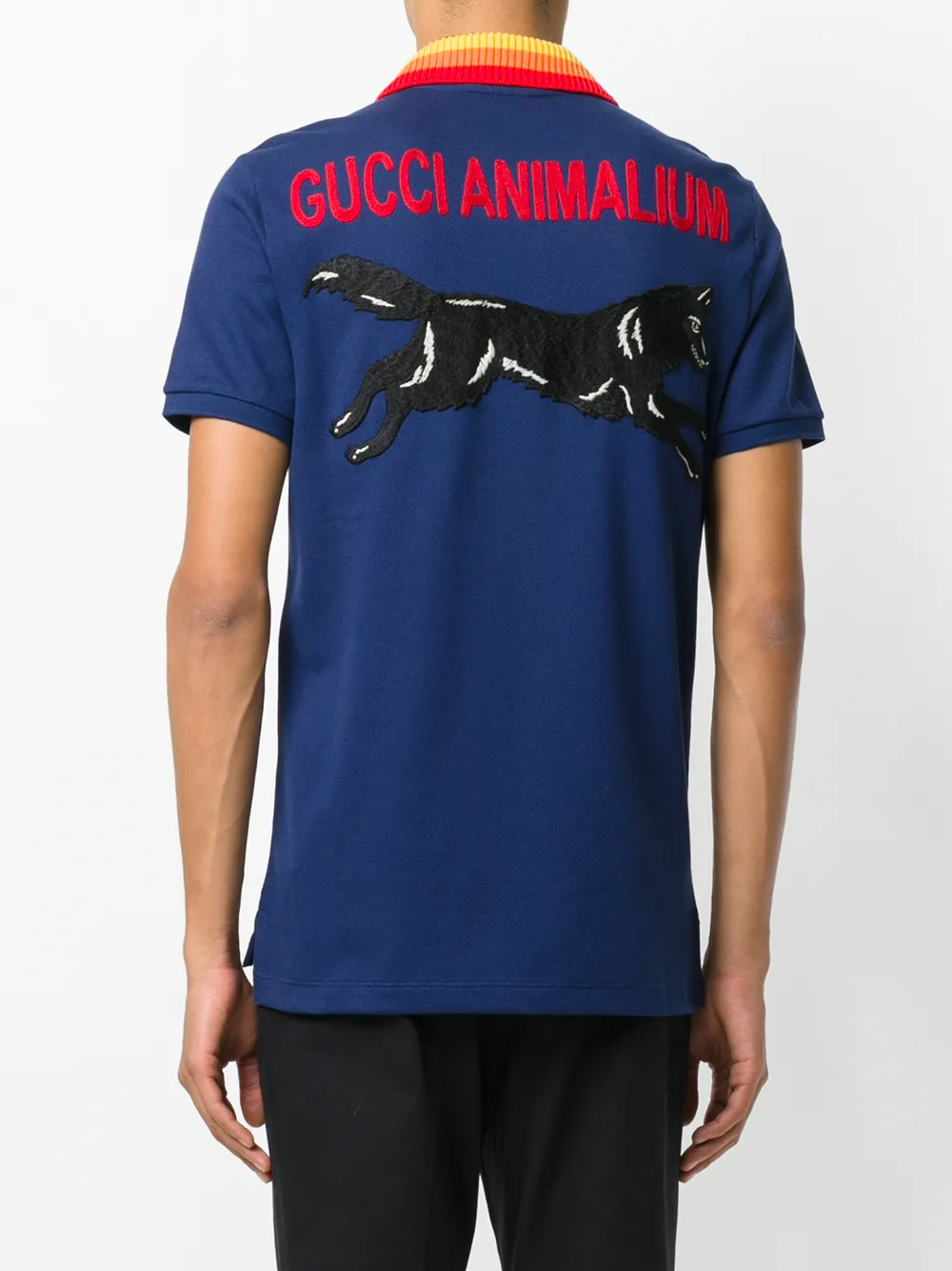 polo shirt with wolf appliqué