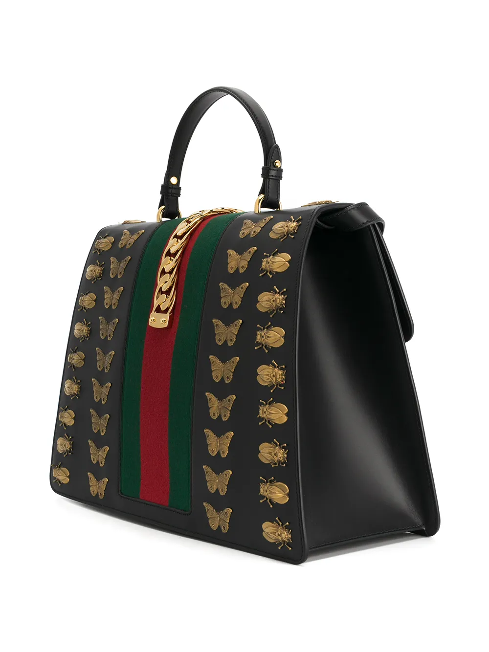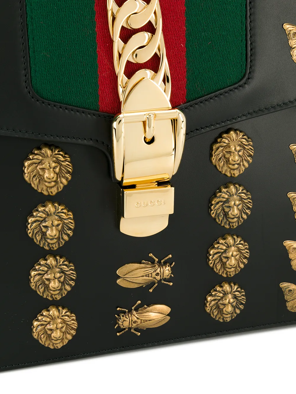Gucci Black Sylvie animal studs Leather tote bag