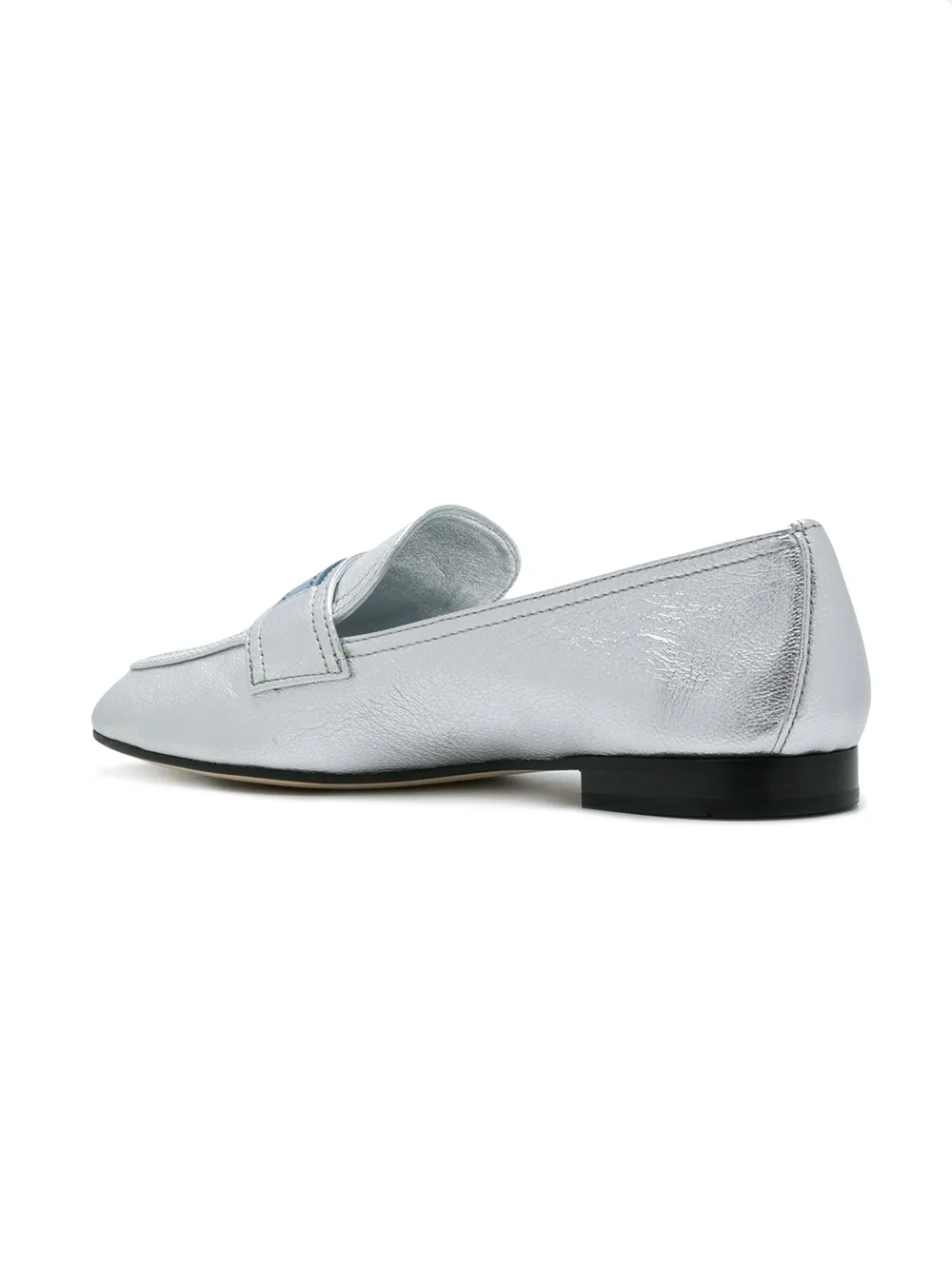 Silver logo leather loafers