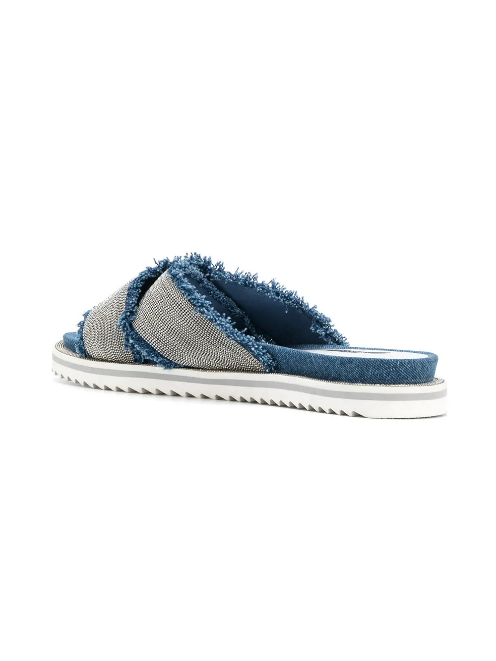 beaded cross strap denim sandals