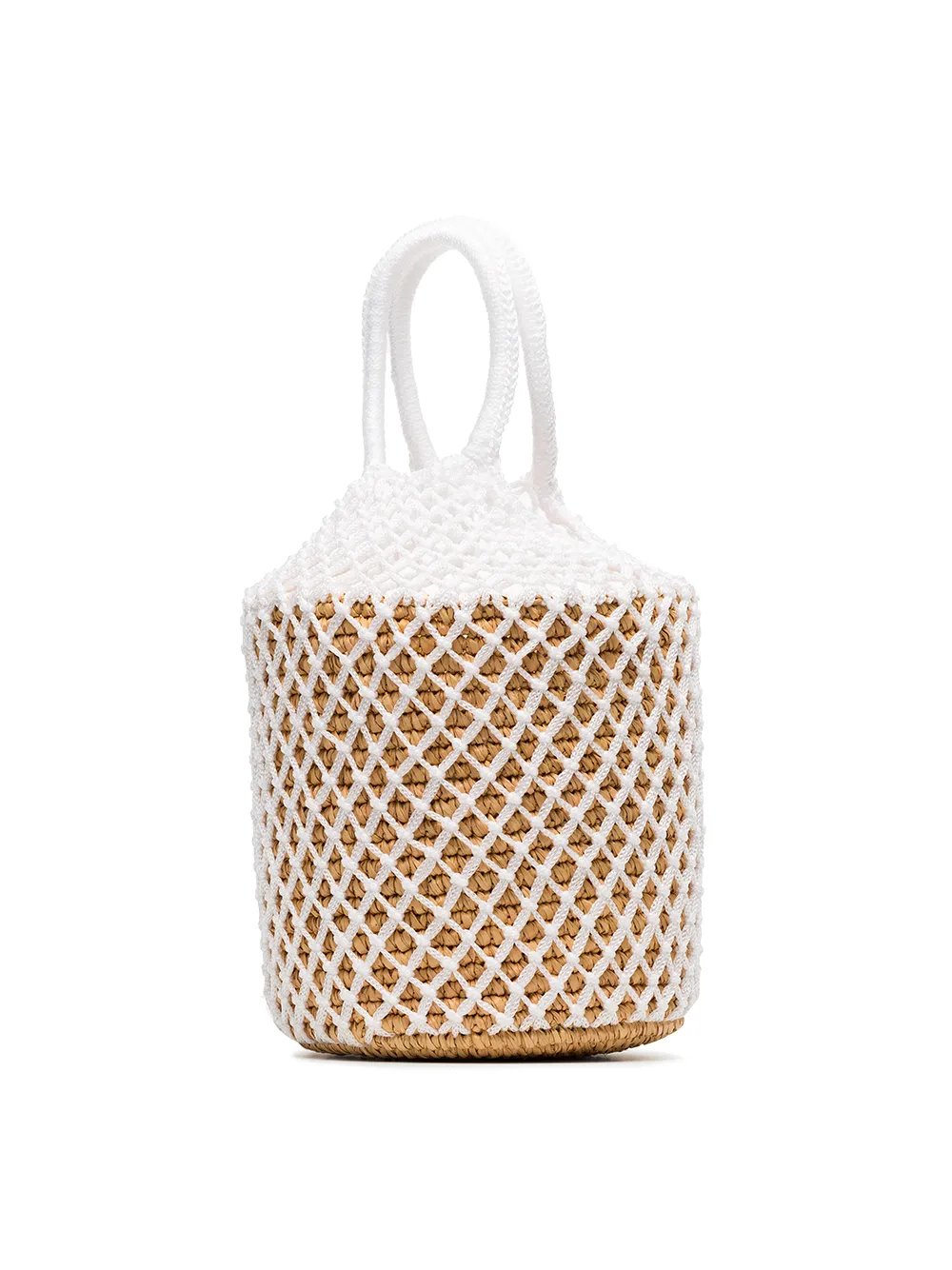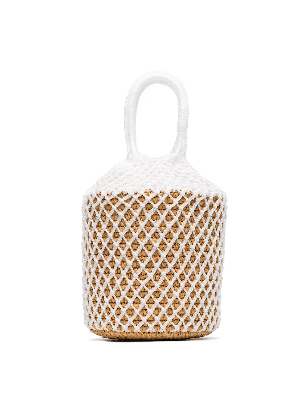 White straw and net bucket bag