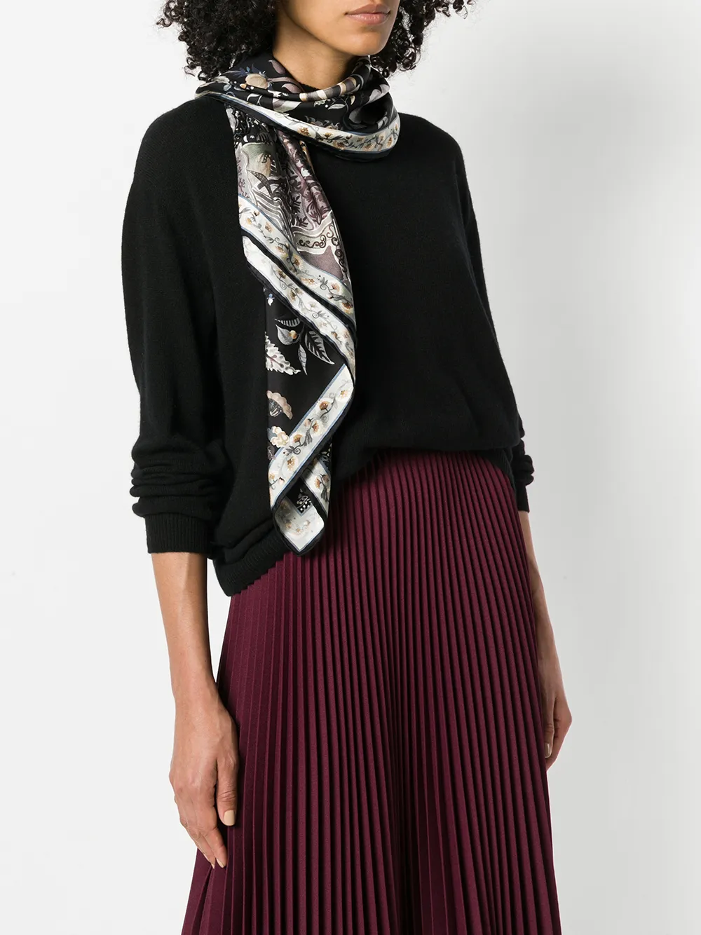 Salvatore Ferragamo Gancini and Flowers print scarf - Black