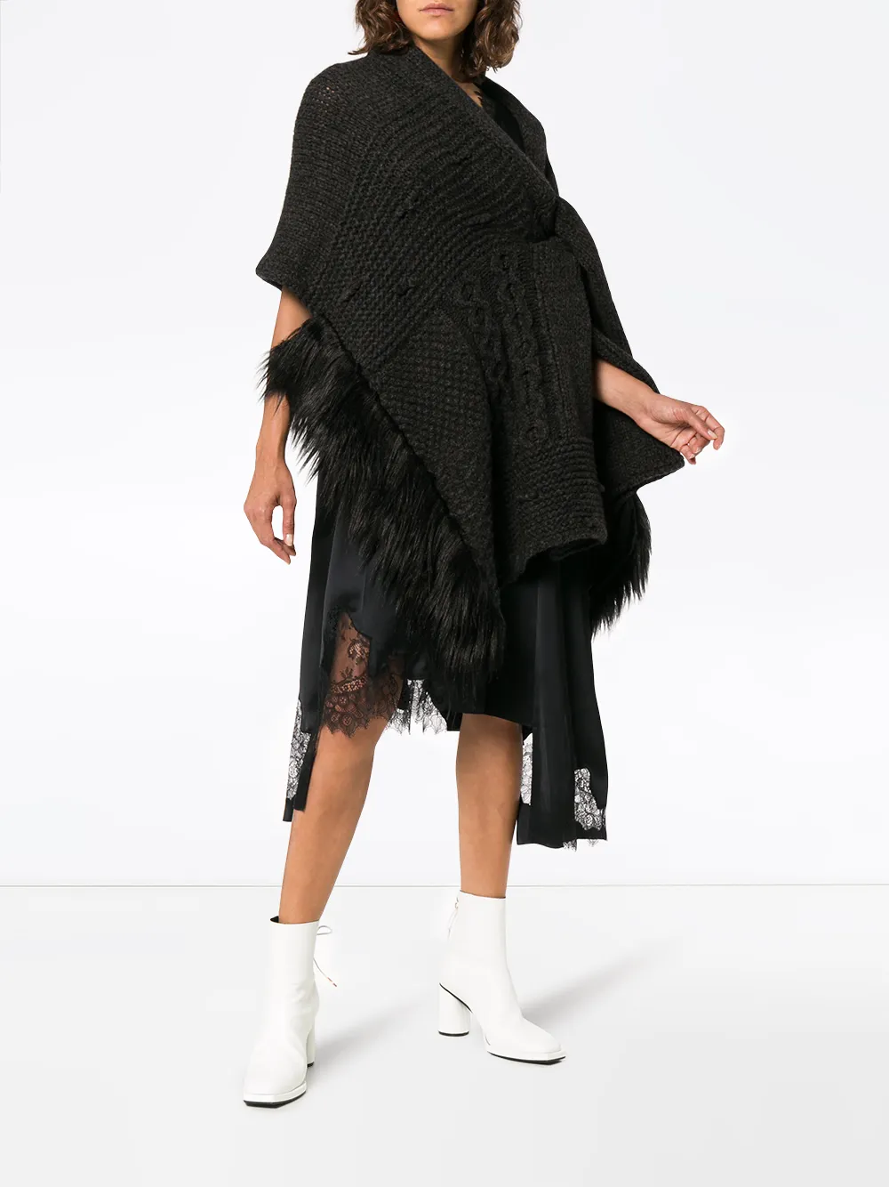 Simone Rocha faux fur trim wool blend wrap cardigan scarf - Grey