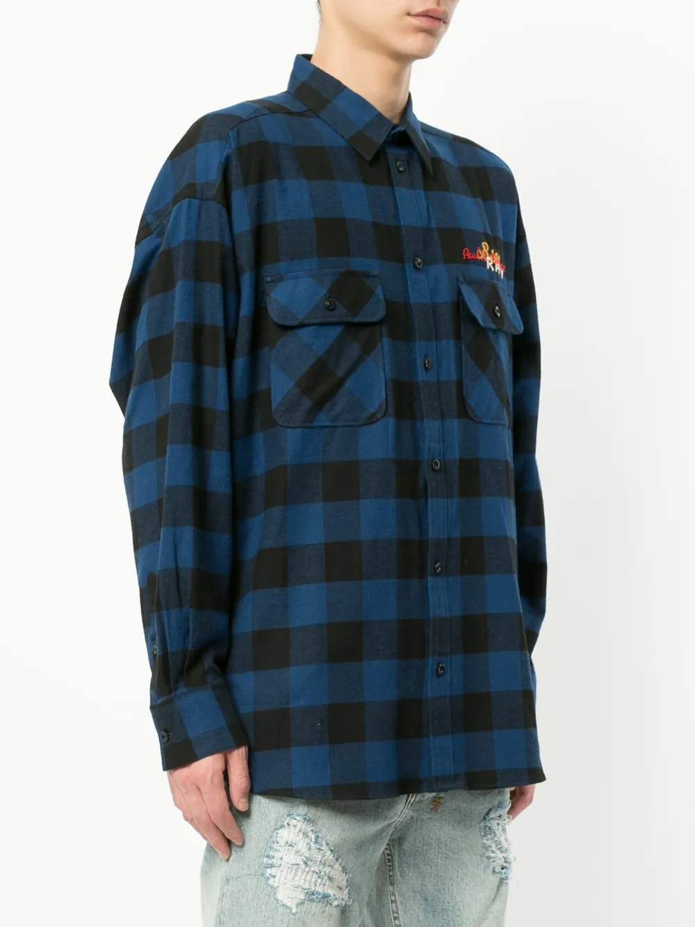 Doublet back embroidered checked shirt - Blue