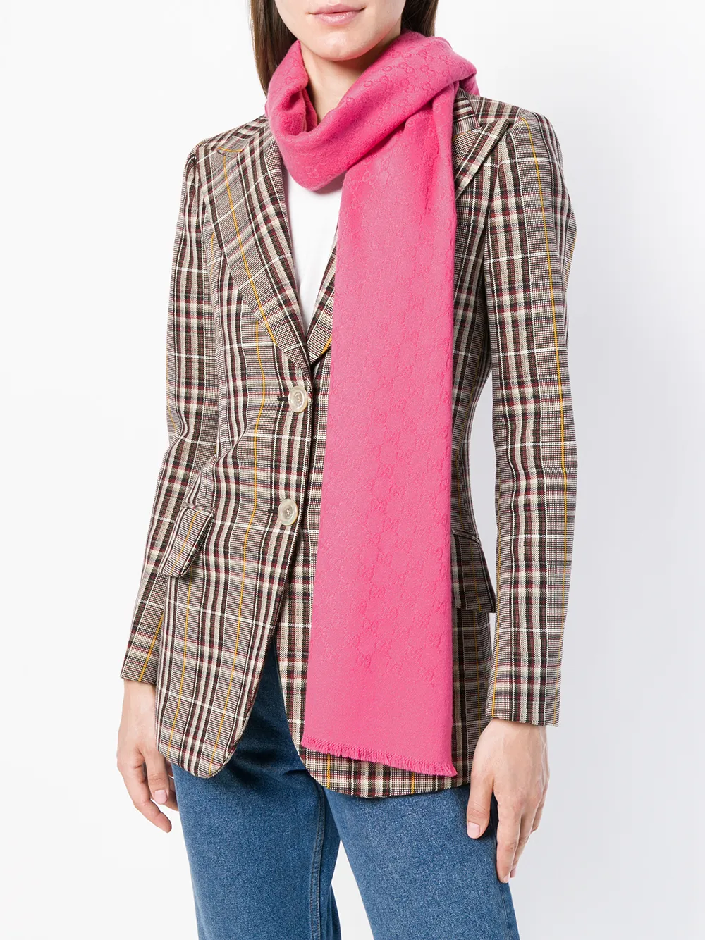 View fullscreen View fullscreen View fullscreen Gucci Gucci GG jacquard scarf - Pink $ 612 From FARFETCH Buy now Details GG jacquard scarf