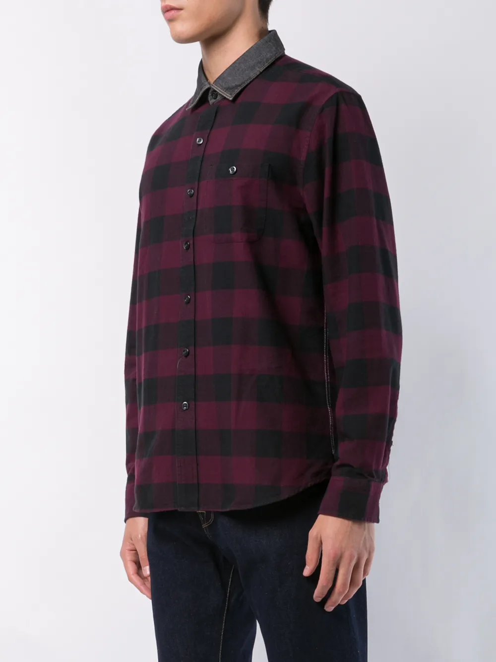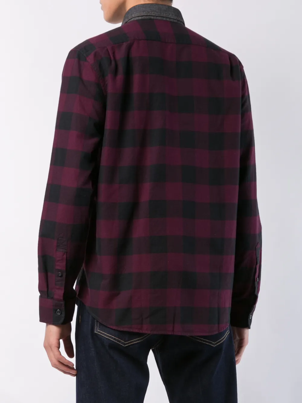 contrasting collar check shirt