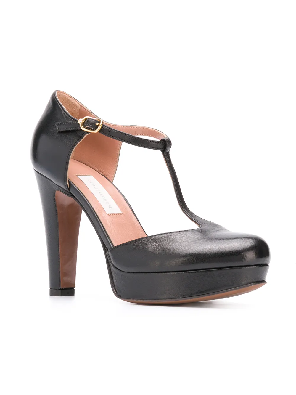 L'Autre Chose Birch leather T-bar sandals - Black