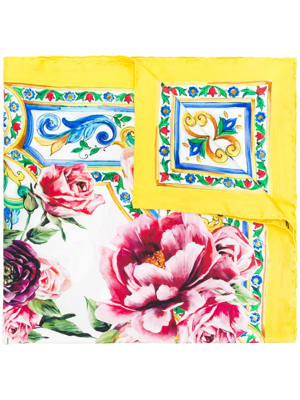 Dolce & Gabbana majolica and peonies print scarf - Yellow
