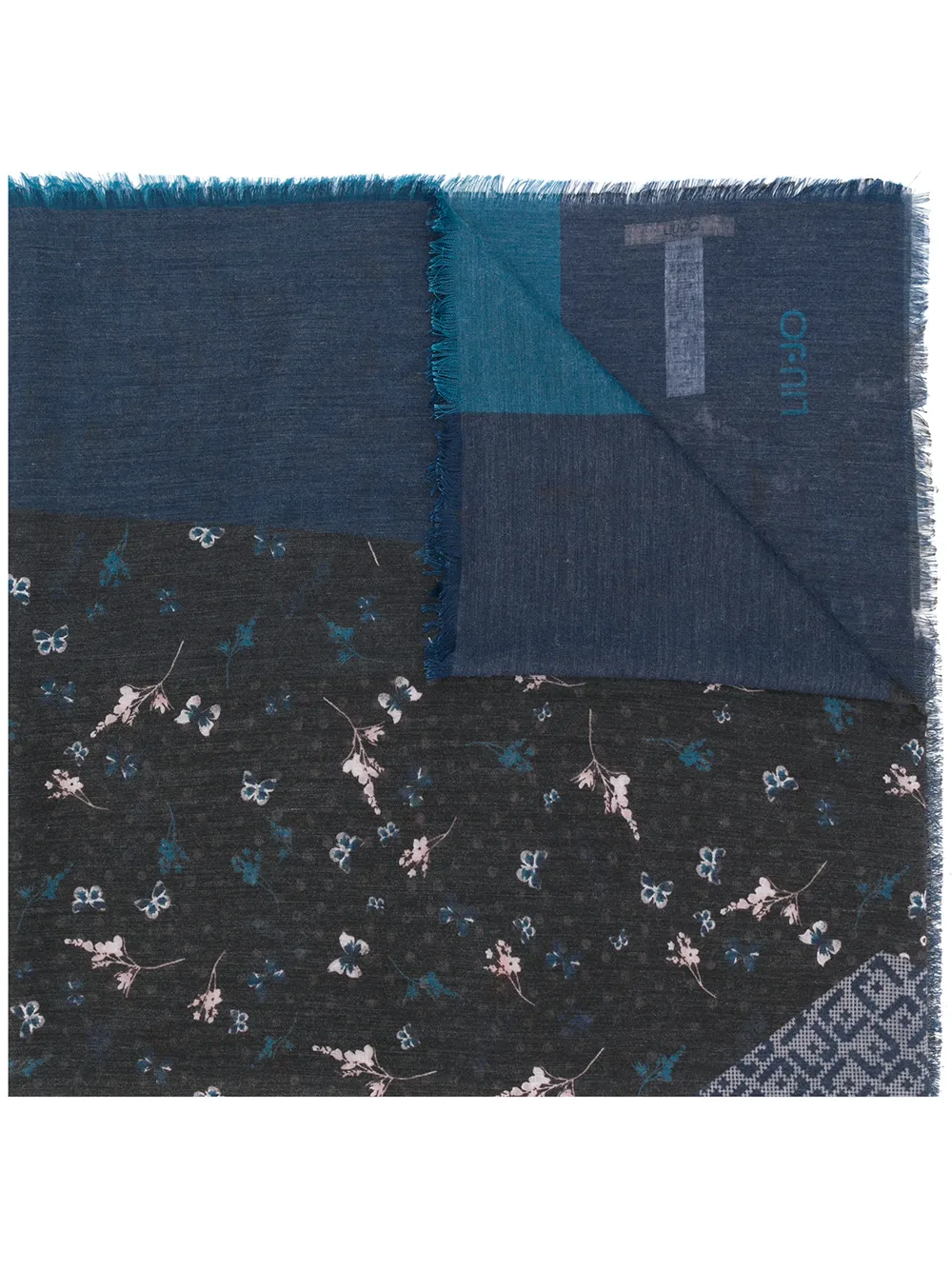 Liu Jo frayed hem printed scarf - Blue