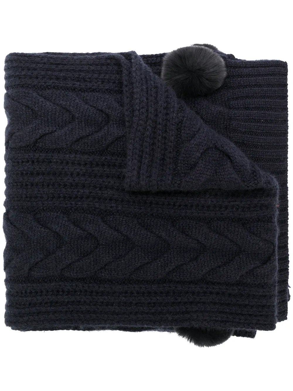 N.Peal pom-pom cable knit scarf - Grey