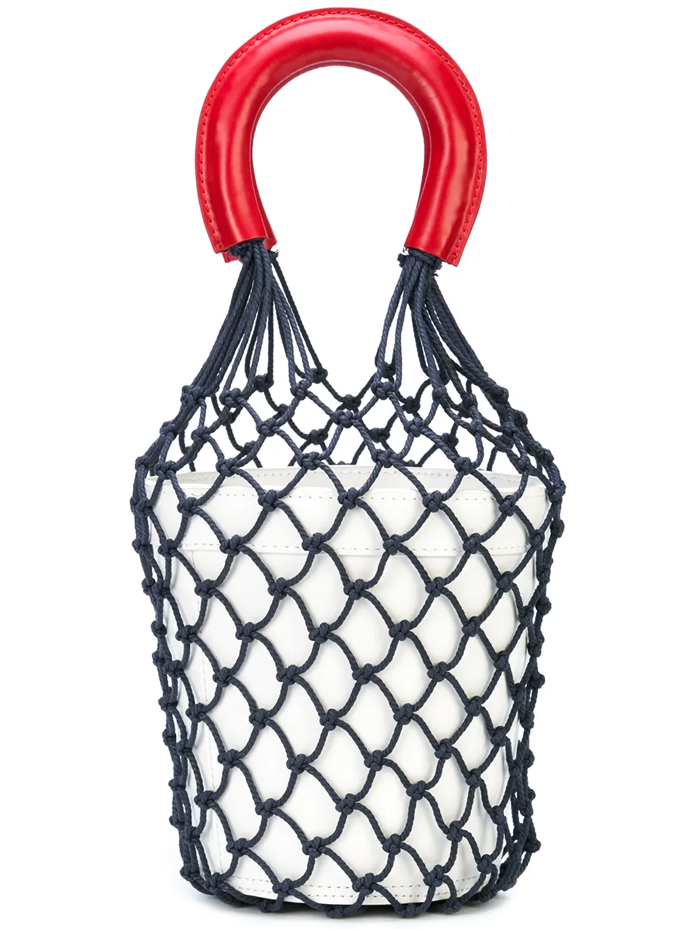 Staud white and brown moreau macrame and leather bucket bag