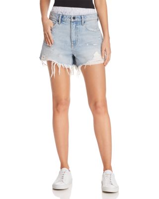 T by Alexander Wang Bite Mix Layered-Look Denim Shorts in Bleach