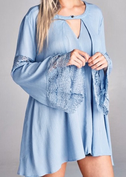 Solid Lace Splicing Asymmetric Mini Dress