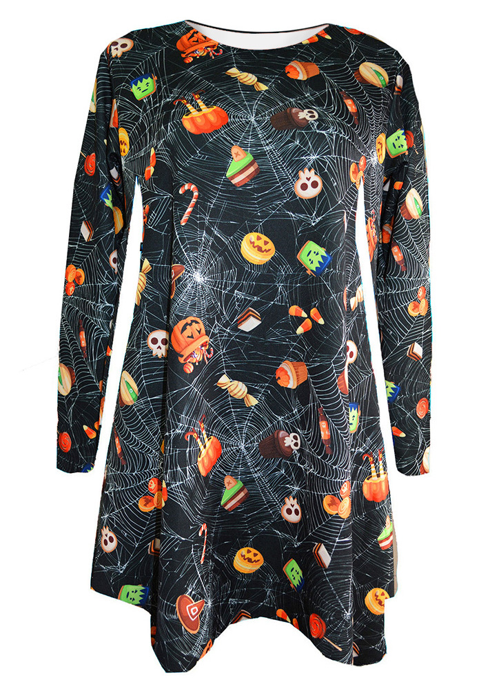 Halloween Dessert Printed Long Sleeve Dress