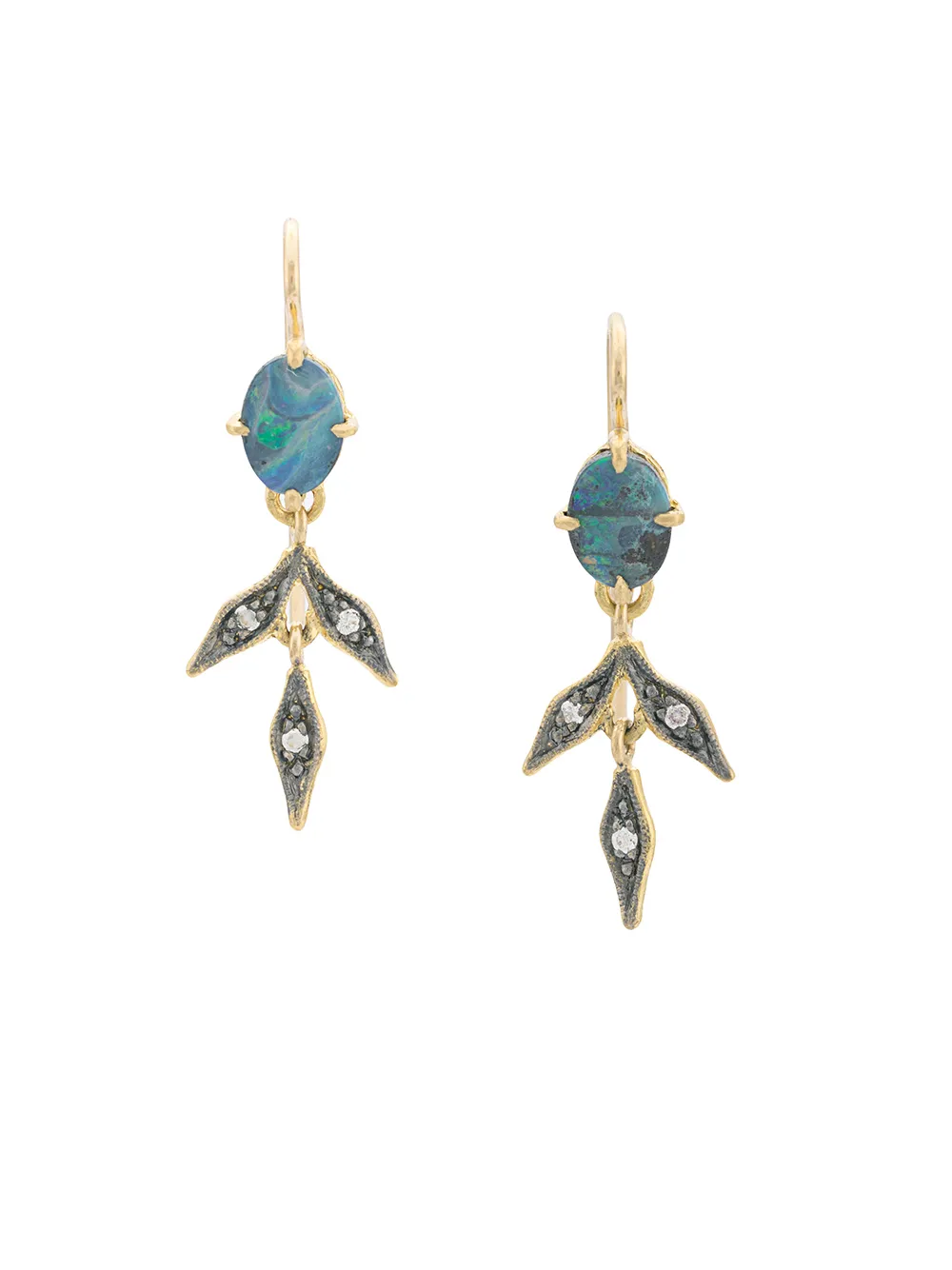 Cathy Waterman 22kt gold and blackened opal Lyrical Wheat earrings - Metallic