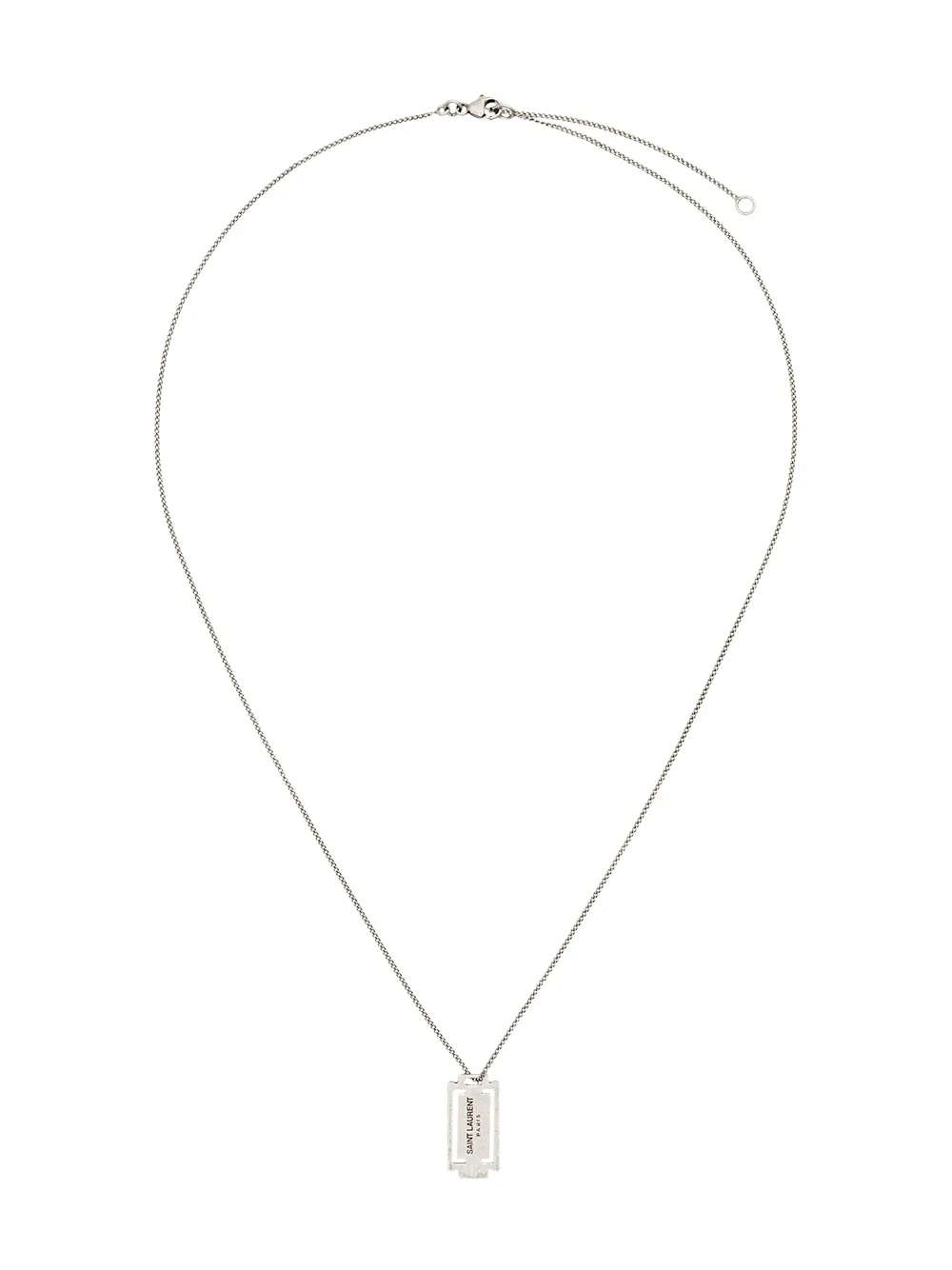Saint Laurent metallic silver razor blade pendant necklace